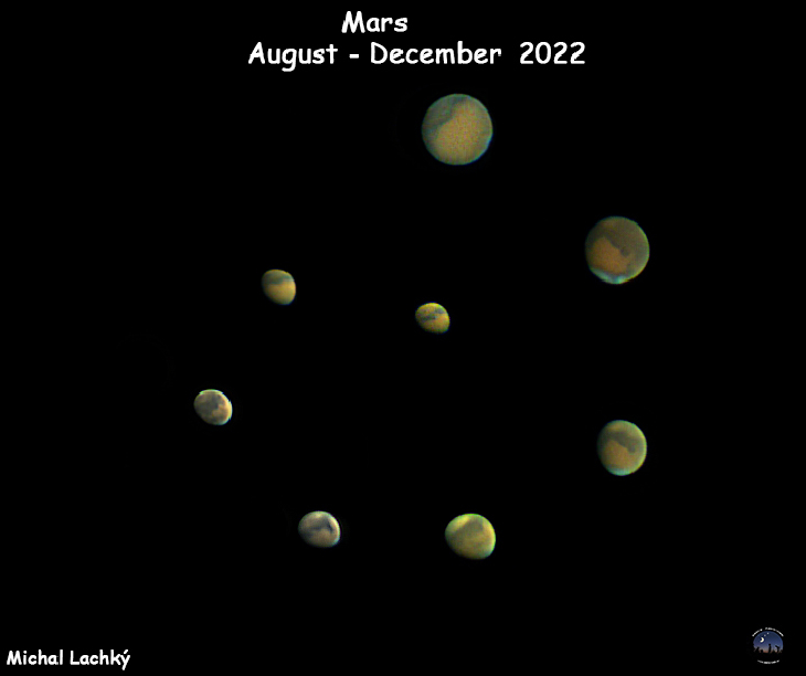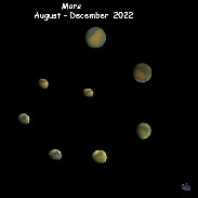 My progress of Mars, its changes in phase and increase in angular diameter from August to December of this year, when it reached the largest angular diameter, which is 17.2".