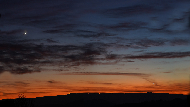 Moon-Venus-Mercury in the evening sky. Despite clouds and the low position Venus was easily visible. Venus was a good reference point to find Mercury, which was even faintly visible with the naked eye