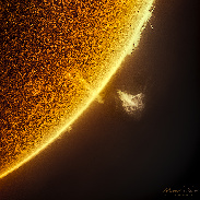 Captured on the January 3rd and 5th, 2023, from Dark Sky® Alqueva region, Portugal, a high-resolution image and time lapse sequence features the chromosphere activity during two days in a row, showing the sunspot AR3182 throwing a short and fast eruptive prominence just few hours before releasing an X1.2 Flare which occured on Jan. 6th just before 0100 UT, unfortunatly nightime in Portugal. On the January 3, the solar chromosphere was also featuring a cloud of fire hovering over the sun, trapped and suspended by magnetic strong forces. It’s possible to see a lot of interesting changes in the shape of this “cloud”as well as on the prominence structures. We can also notice a lot of fine spicules surrounding the solar disc, while the chromosphere itself shows a slower motion. Conditions were good, so I’ve manage to make a time lapse of about 634 images for both days. The final result is a 4K high resolution solar movie comprising around 2h45 minutes of photos.