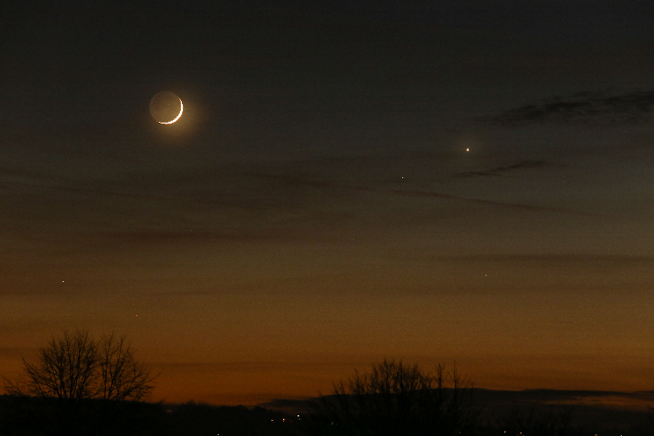 The 2 day old moon alongside Venus & Saturn in the deepening twilight, looked absolutely stunning as the sky darkened this evening. Canon EOS6D 200mm F/8 lens @150mm, ISO 2000, 0.5sec