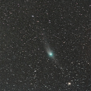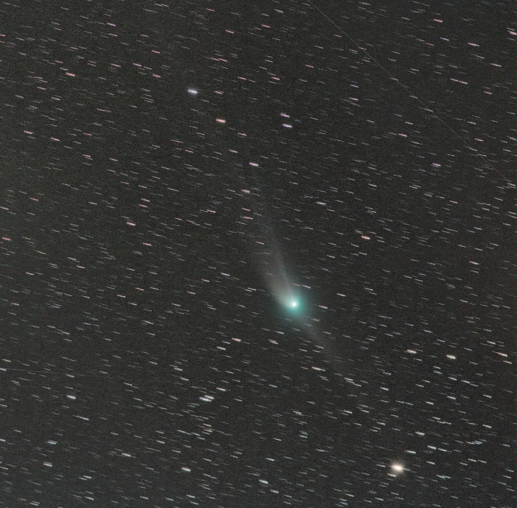 Comet C/2022 E3 (ZTF) in the bright suburban sky from a hill near the city. It was not naked-eye visible from here, but I was surprised how much detail was picked up by the camera.