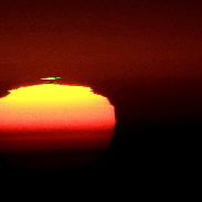 In the film, you can see the sun changing layer by layer, and green flashes emerge from the top from time to time. Mock mirage sunspots are also forming at several locations. It is really an amazing mock mirage sunset!