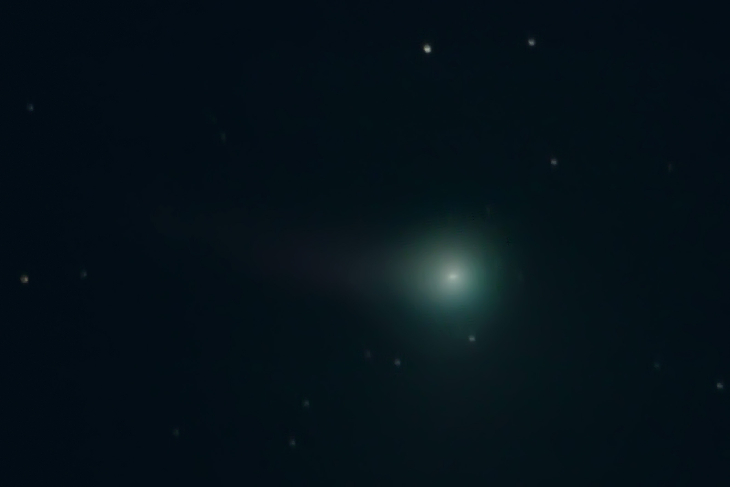 With the Moon in the sky, the comet is faint when seen with the naked eye; observation improves in a 7X50 binocular.