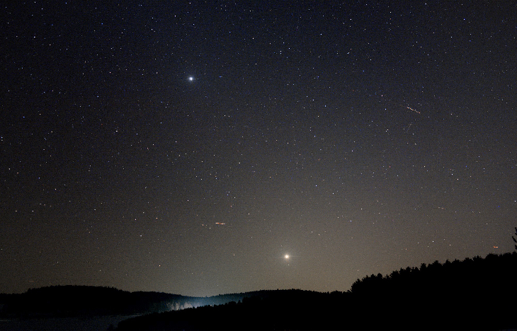 18.30 UT - the two bright planets move closer together. Four images taken with a Google Pixel Handy (two) and a Nikon Z6 mod with F-50/2.5 and 5-7 seconds exposure time
