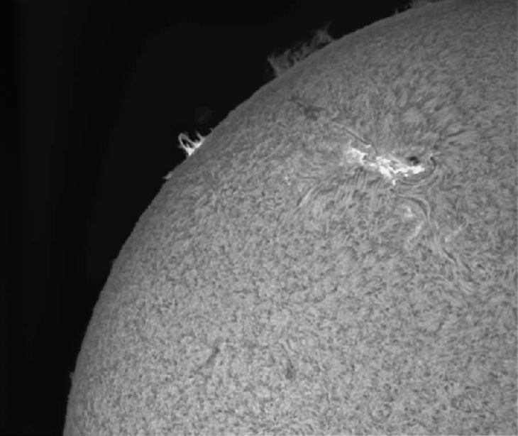 At about 1908GMT, I spotted a bright prominence loop along the northeast corner of the sun. This is my one capture of that loop; subsequent frames showed the loop broke up in a matter of minutes.
