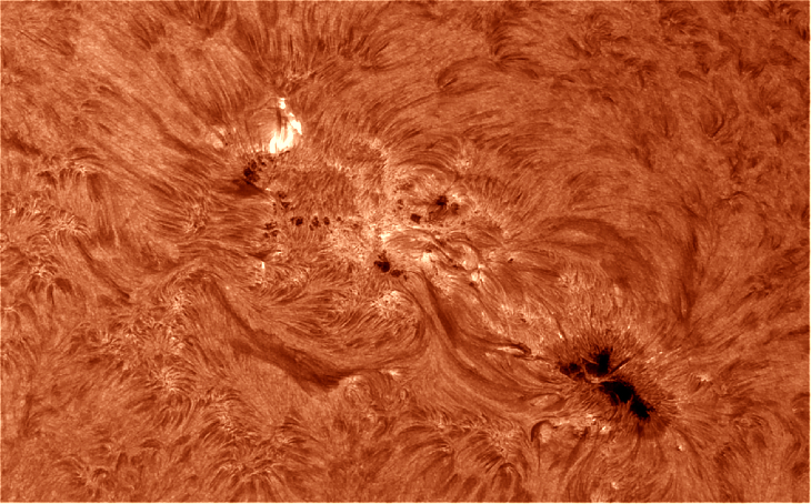 A large bright prominence was seen with my 228mm F9 refractor fitted with a Baader TZ-3 telecentric lens and Daystar Quantum PE .5 angstrom H-alpha filter. The small flare of AR 3234 shows the signature "S" form that many flares exhibit.