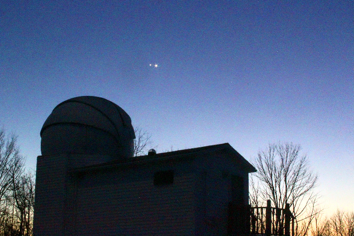 I got this photo of the Jupiter Venus conjunction over the large dome at our observatory in Ionia