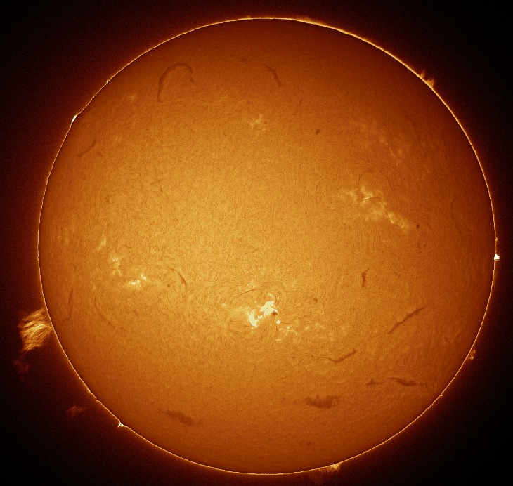 I used the Coronado PST, a 2x Barlow and a PlayerOne Saturn-M SQR camera to image the whole Sun at F= 800 mm and pushed to F= 1600 mm with a second 2x Barlow ...