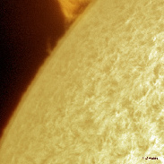 A wonderful sight today at the suns limb, a great prominence visible through the Ha solar filter.