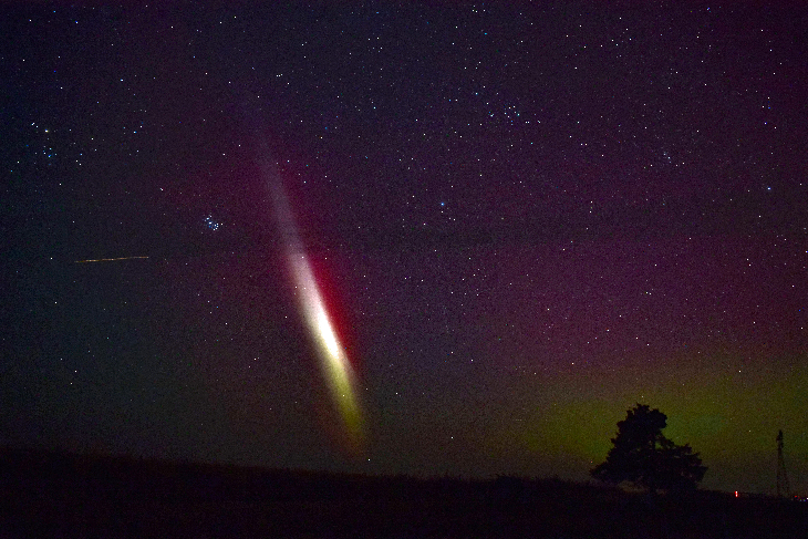 I met STEVE for the first time in my life around 11 PM March 23, 2023. "He" was alone in the NW sky . After meeting "him" we both enjoyed a beautiful Northern Lights show in SW Nebraska :) There was a burst of activity around 1 AM March 24. This was easily naked eye visible including the reds . My camera captured this scene with awe inspiring photos.