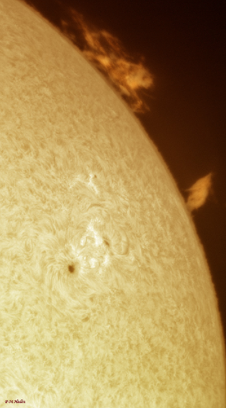 Beautiful sight today at the suns limb. Orion 80ED, ASI290MM and SM60 filter.