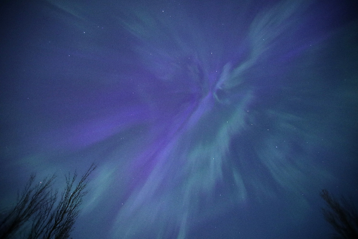 No need to head out of the city for this show. Even through the urban glow, these aurora filled the entire sky at points.