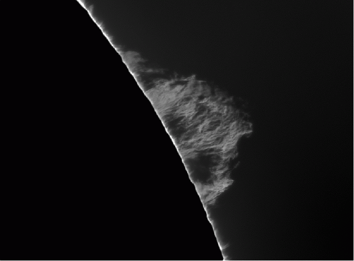 A quiet group of prominences, caught in a 22 -minutes time lapse animation. A SkyWatcher 150 mm f/5 achromat with reduced aperture, 135 mm D-ERF, PST etalon and ASI290MM camera were used.