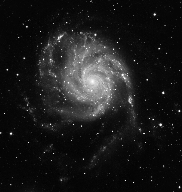 This is an image of supernova 2023ixf in M101 four days after its discovery and the third day in a series that I have captured it. This image is 30 x 120 sec with iTelescope T11. Reported magnitude of the supernova in AAVSO at time of capture was about 11.1. full resolution: https://flic.kr/p/2oC8eaA