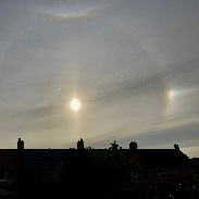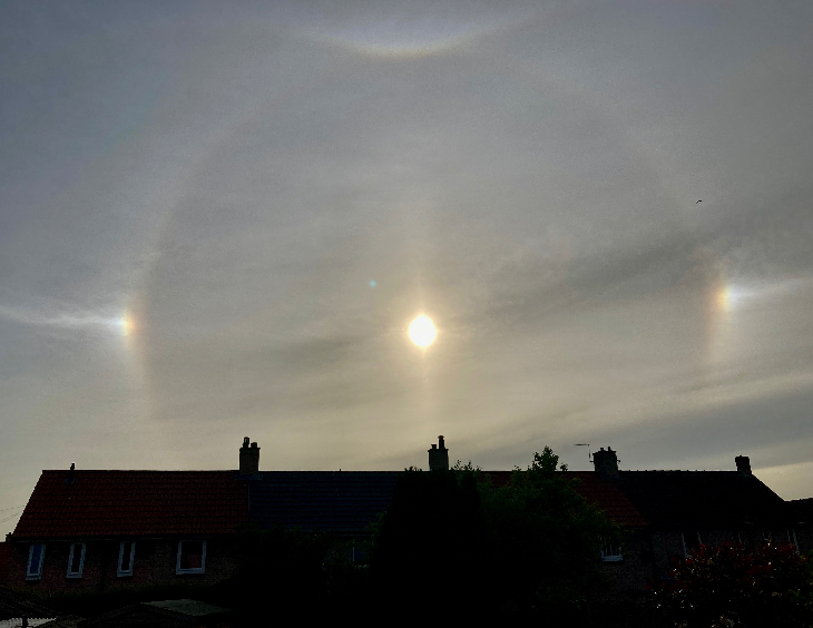 A Sun halo with a sun dog either side of it. Photo take from my garden at 18.56