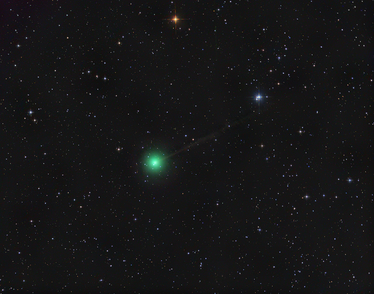 Here is a shot of Comet Atlas 2023 E1 taken last night from Payson. The moon and fire smoke was starting to interfere. The tail on this one is EXTREMELY faint, and did not record too well. But it does have a nice green color to the coma. 10" f/3.9, Atik 16200 CCD, 2h total LRGB.