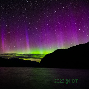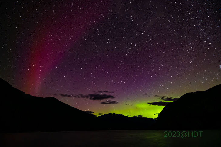 The night began with fighting high winds and clouds. I could see the arrival of the geomagnetic storm that was possibly from a CME that launched from the Sun on the 23rd. The clouds began to dissipate and the Aurora was a diffuse purple and green. As always I looked around hoping that I might catch STEVE. I spied something to the Northwest but it was to far North to be STEVE. I swung my camera over and almost fell over when I checked the shot there was one of the brightest SAR arcs that I have seen! The SAR lasted around 45 minutes then dissipated and disappeared. The show was not over yet and 45 minutes later the Aurora gave a crescendo that I will never forget a beautiful pillar show to end the night. How sweet the Aurora can be