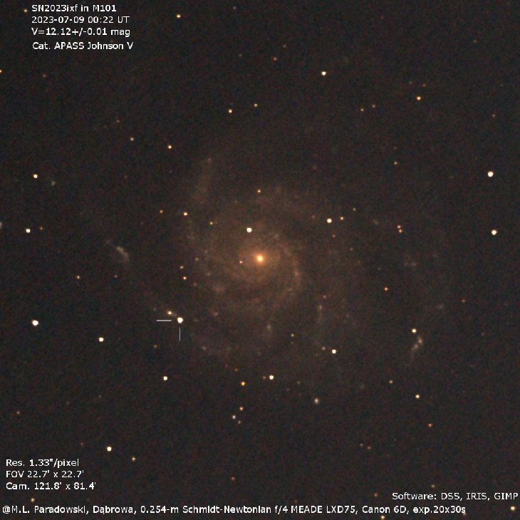 In my previous observations with the same equipment, the measured brightness of this supernova was V=11.04 +/- 0.02 mag on 2023 05 29 00:24 UT.