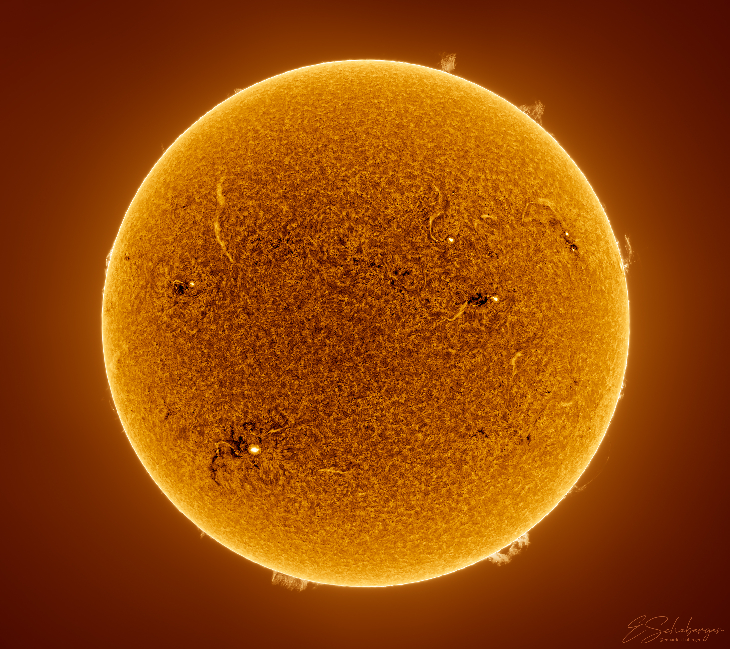 To capture this sight, I utilized a 90mm aperture Coronado Solarmax II telescope in conjunction with a Player One Saturn-M SQR camera.