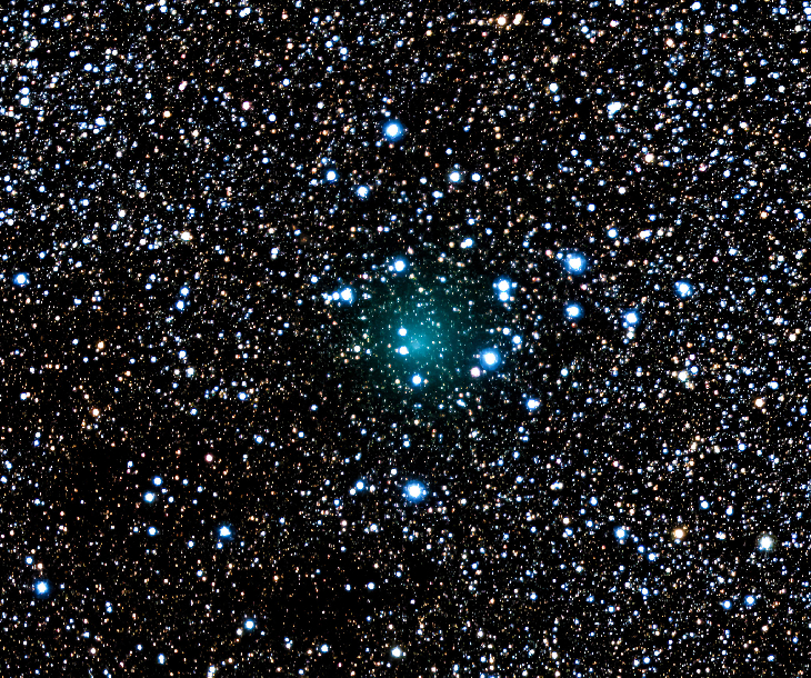 Comet 2023 E1 transited through a beautiful star cluster, M39, providing a great photo opportunity. This image was captured with iTelescope T68 at 6 x 60 sec.