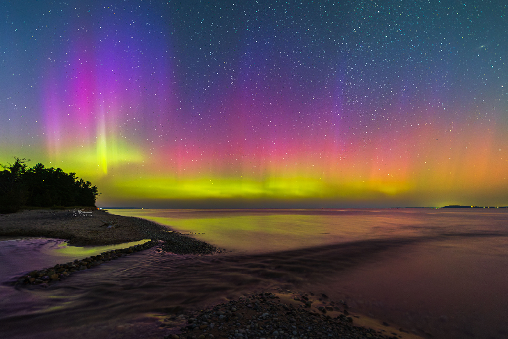 The Northern Lights dancing over where Shalda Creek meets Lake Michigan. Sleeping Bear Dunes National Lakeshore near Empire, Michigan. 9/2/23 at 9:45pm, just before the moon rose. Last night was absolutely epic!!