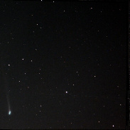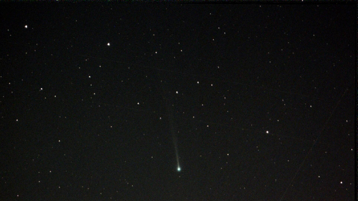 The tail of Comet Nishimura was about six degrees long now, and easy in both the Unistellar eQuinox 1 and the Dwarf II. Long exposures showed the motion of the nucleus sunward. Note the many photobombs in the dawn by satellites.
