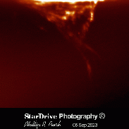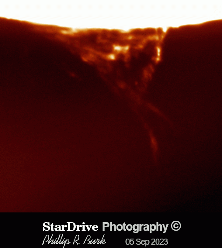I witnessed a prominence event on the Sun at the south end during a flare of AR3421 and seemed to last for the same duration. The prominence was huge and I was able to capture it in progress.