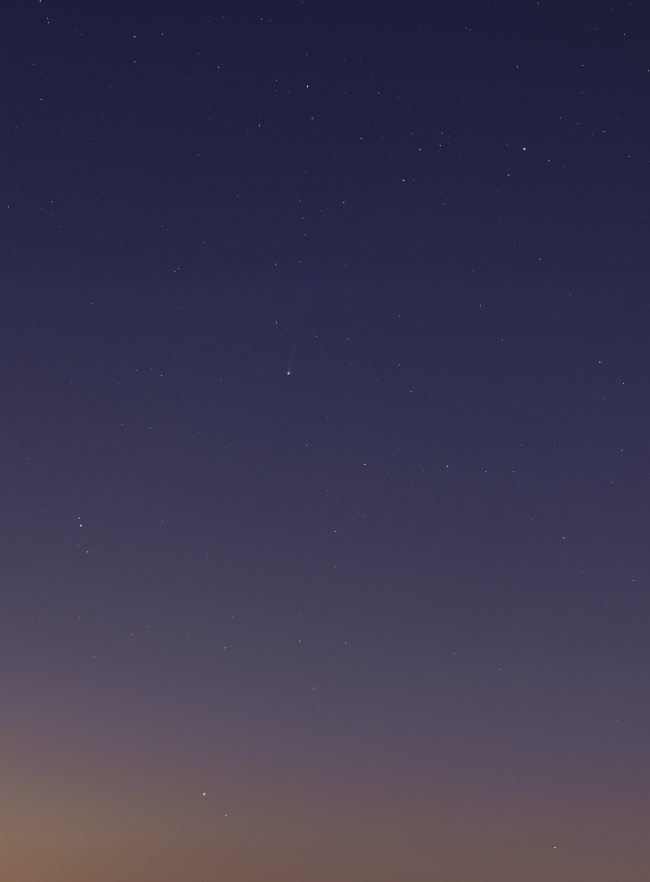 I took this photo from a balcony of my flat. Comet was easily visible in binoculars, but tail only sligtly and with averted vision.
