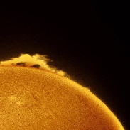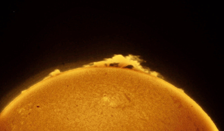 Prominencia solar de gran tamaƱo, lograda con telescopio coronado pst 40mm y camara canon EOS T5,ISO 400 exp 1/5 seg. A Las 15:36 Hora local