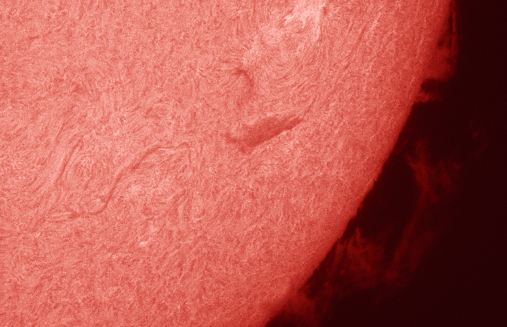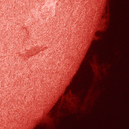 Here I filmed the large prominence structure on the south west limb between 09:16 and 10:21 UT through very thin cloud and variable seeing conditions.