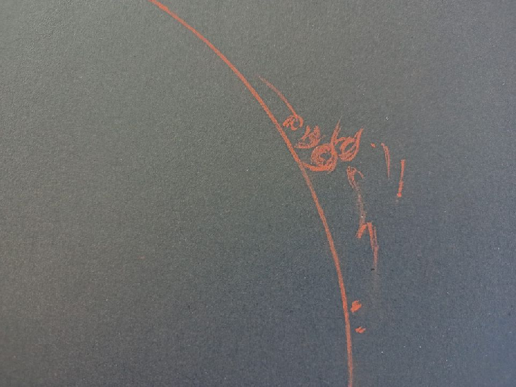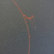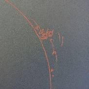 Prominence 1) on the solar limb today September 16th 2023 - This one was very active. PST 40 with 8mm eyepiece. Pastel pencil on black paper. 11:51 UT Lots of clouds from the North. Cool breeze.