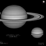 A new set of images under good seeing conditions. The transparency was average. Dione and Tethys can be seen on the lower left. An oval can be seen at L3=142°, lat=43°. The SEB in the R band appears complex with many knots, some of them at L3=121°, lat=-37°