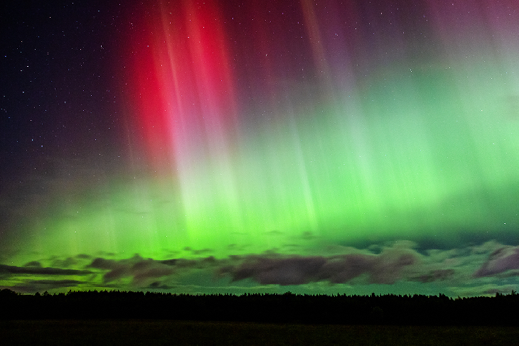 This was the scene around local midnight last night: a gorgeous auroral display. At times, the reds were so intense the colour could be picked up by the unaided eye.