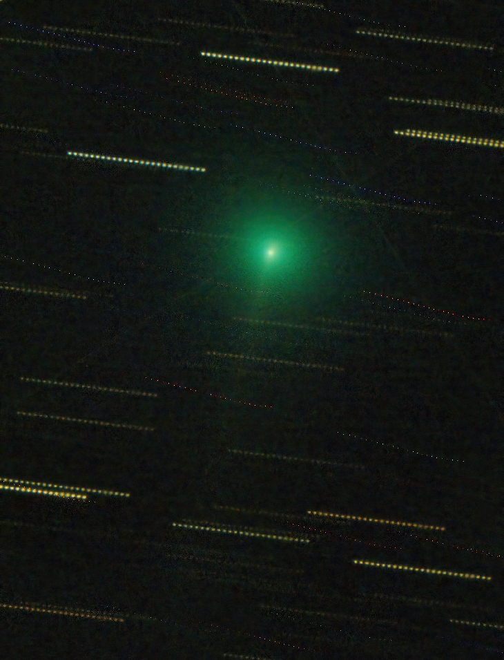 On October 31 2023 Comet 2023 H2 (Lemmon) crossed Earth's orbital plane.This is a telescopic comet of mag 8.3, This image was captured with iTelescope T02 25 x 60 sec in bright Moonlight.