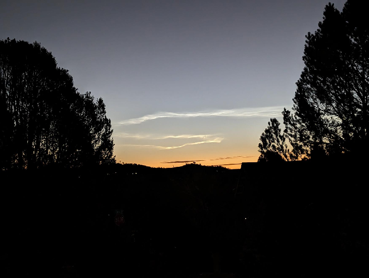 I woke up and went out to checkout the sunrise and I was presented with the view of these noctilucent clouds. I've never seen them before in my area, only online pictures from Spaceweather.com - I quickly jumped online to see if there was a rocket launch recently, and there was. Space X has launched a few Starlink satellites hours before.