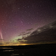 It wall like a red wall, but with a white ribbon as well, in the East, and to the west there was also a red band and white ribbon. At one point the red arc went right across the top of the sky, from WNW to ENE.