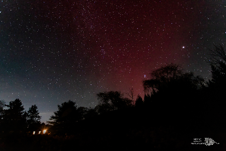 The sky was pinkish ... when I took a longer exposure (15 sec f4 ISO 6400) the color popped out. Wow! Was my reaction.
