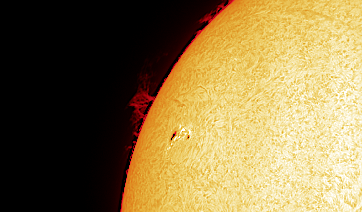 Nice sunspot and prominences in H alpha. Lunt 60MT