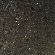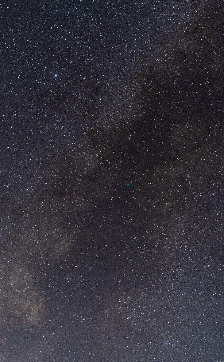 Saturday Evening, November 11, Comet Lemmon was inside the dark dust lanes within the Milkyway just below Altair. Camera: Pentax K1, with 70-200 mm F2.8 DFA. First image taken at 70 mm and easy to find by placing Altair in the upper left hand corner, then zoomed in at 200 mm. The two 200 mm shots taken about one hour apart, and cropped to show similar field of view showing how rapidly comet Lemmon was moving against the star field. Tracked using Astrotracer builtin function.