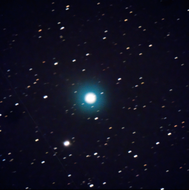 Beautiful blue/green coma developing around this exploding comet looking very similar to 17P/Holmes event of a few years ago.