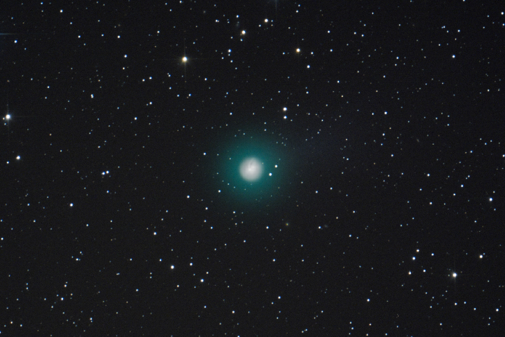 Image of comet 12P from last night, taken with a Newton 200/1000 telescope and the ASI 294MC camera. You can see the green coma and a certain structure in the inner coma.
