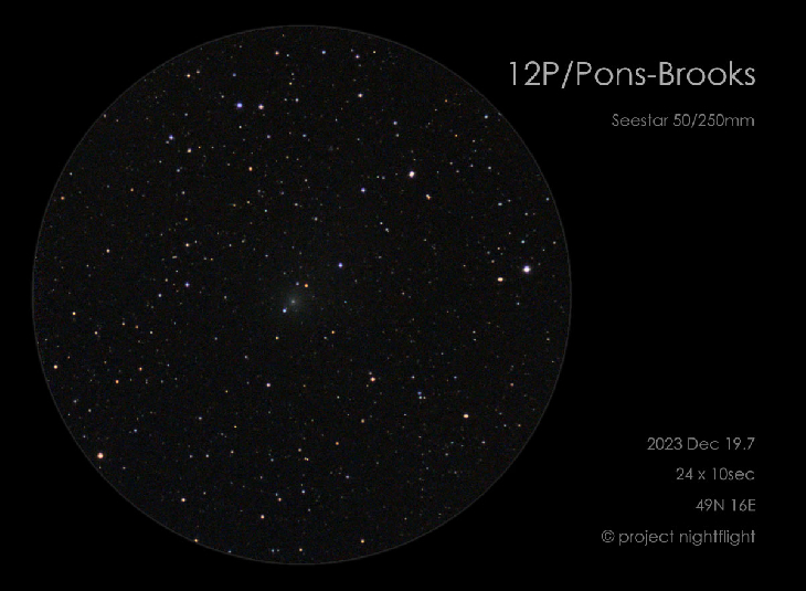 12P imaged with a Seestar smart telescope, 4min exposure from a rural site with a half moon in the sky.