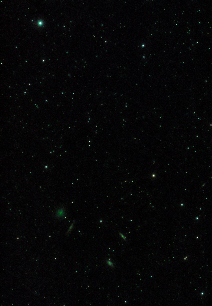 Despite high winds, clouds and a Full Moon I was able to capture 40 x 30 second exposures of Comet 62P adjacent to the Leo Triplet. I have included Theta Leonis, as seen in my previous image, to show the distance travelled.