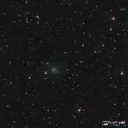 Comet 144P/Kushida imaged on January 6, 2024, at its maximum brightness with a magnitude of 11.6 according to the measurement in this image. It is located in the southeast of constellation Aries and shows a green coma with gradual condensation and an angular size of 9 arcminutes.