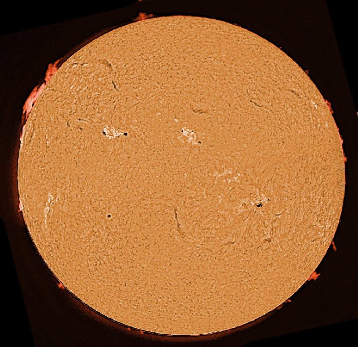 First sight of the Sun for 9 days! Quite unusual, even with the UK's climate! Much of interest though, including a splendid prominence in the NE.
