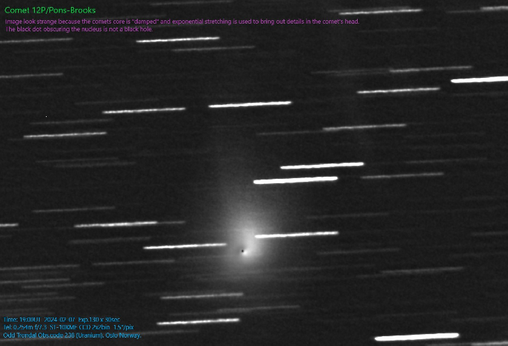 Image look strange because the comets core is "damped" and exponential stretching is used to bring out details in the comet's head.