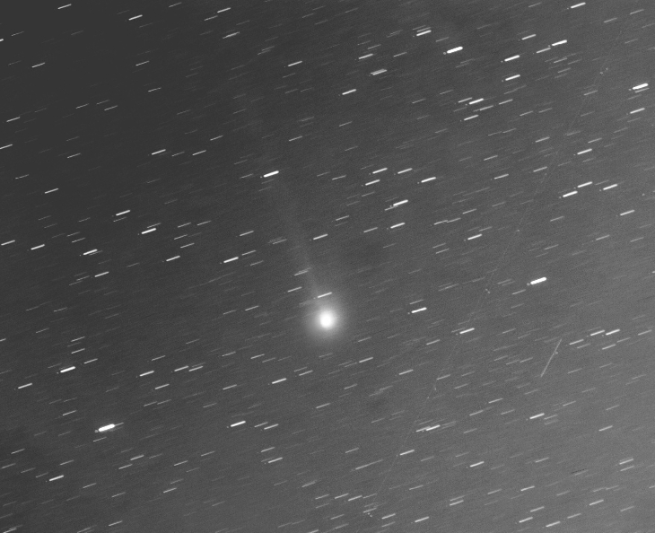 The comet is currently in Andromeda at mag 7.8 with a 1/2° long tail; with a nearly Full Moon out I didn't try to observe it visually. It'll pass about 9° south of the Andromeda Galaxy around March 9-14 and less than half that distance south of the Triangulum Galaxy March 20-24.