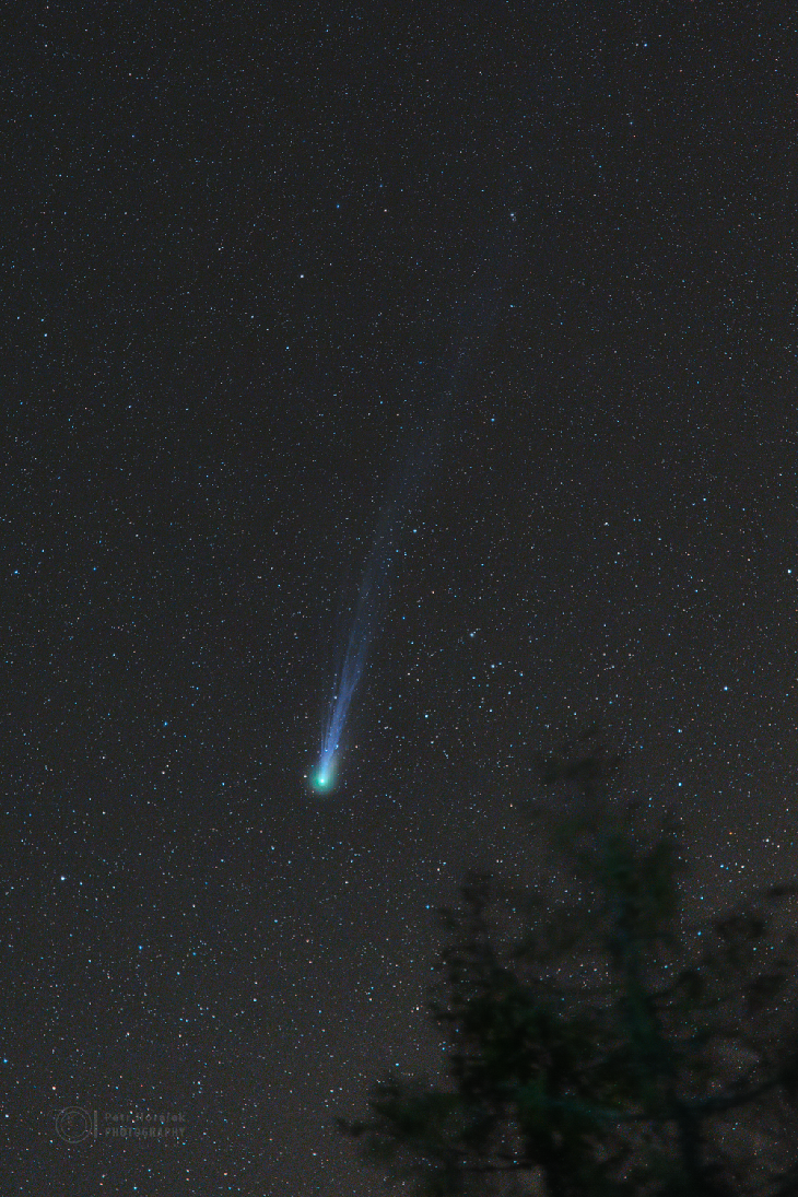 After a three weeks of cloudy days, I could finally try to catch the brightening comet 12P/Pons-Brooks, which is every day more and more beautiful. My attempt to catch comet 12P/Pons-Brooks on the evening of 3 March 2024, around 19UT, brought me to Zdiar, Slovakia, where I found a piece of clear skies after 140 km of driving. Unfortunately, strong light pollution from Zakopane city in direction of the comet made the photography more challenging. Also, there was no free view was in the direction of the comet, so I kept a tree from exposures in the field of view. Eventually, it looks pretty nice, I think :)