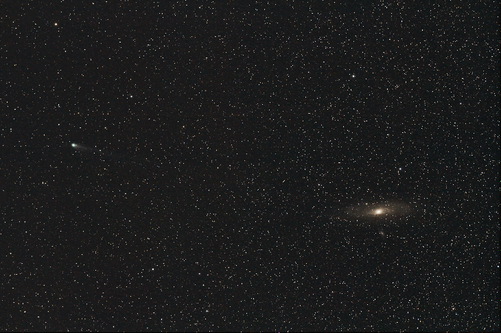 1. 12P/Pons-Brooks and Andromeda galaxy 10.03.2023, 22:07 — 22:40 local time (UTC+8) 52.87 north, 104.88 east Canon 60D Tamron 70-200 mount iOptron SkyGuider-Pro 39 frames 20 sec each., ISO 2000, f 3,5, focal lenth 91 mm. DeepSkyStacker, Pleiades PixInsight png, tif and original
