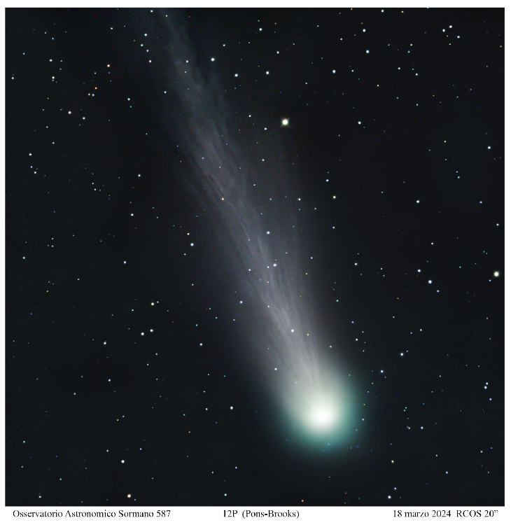 High Resolution Comet 12P (Pons-Brooks) with RCOS 20" f 7 exp 10min 18 marzo 2024 18.30TU